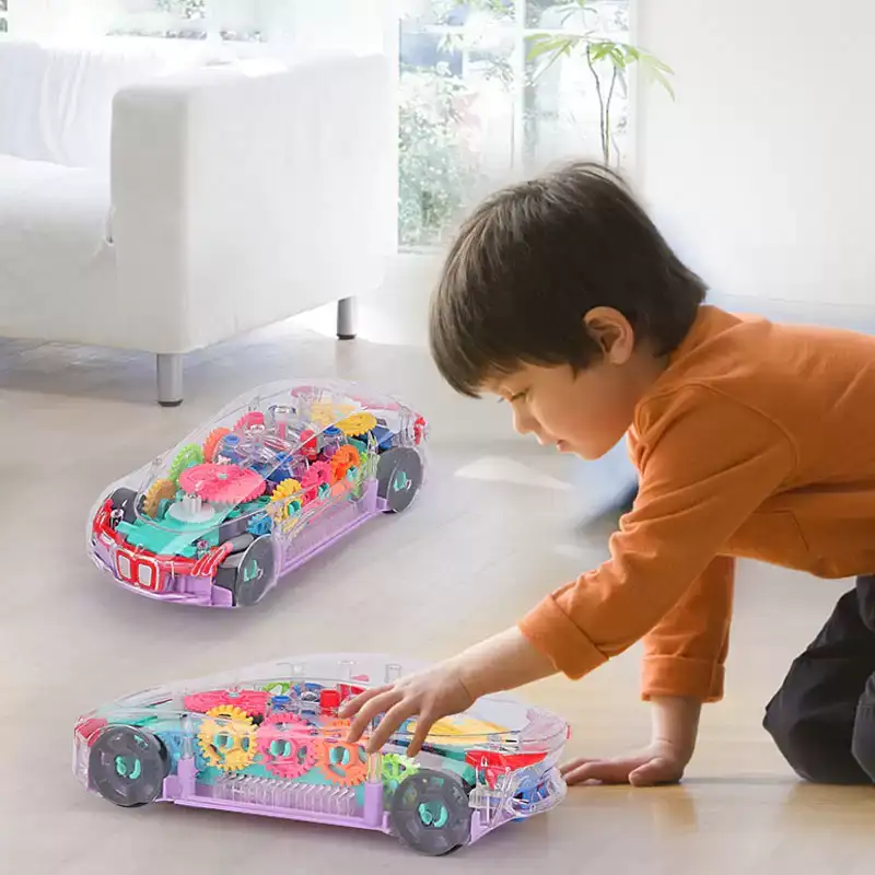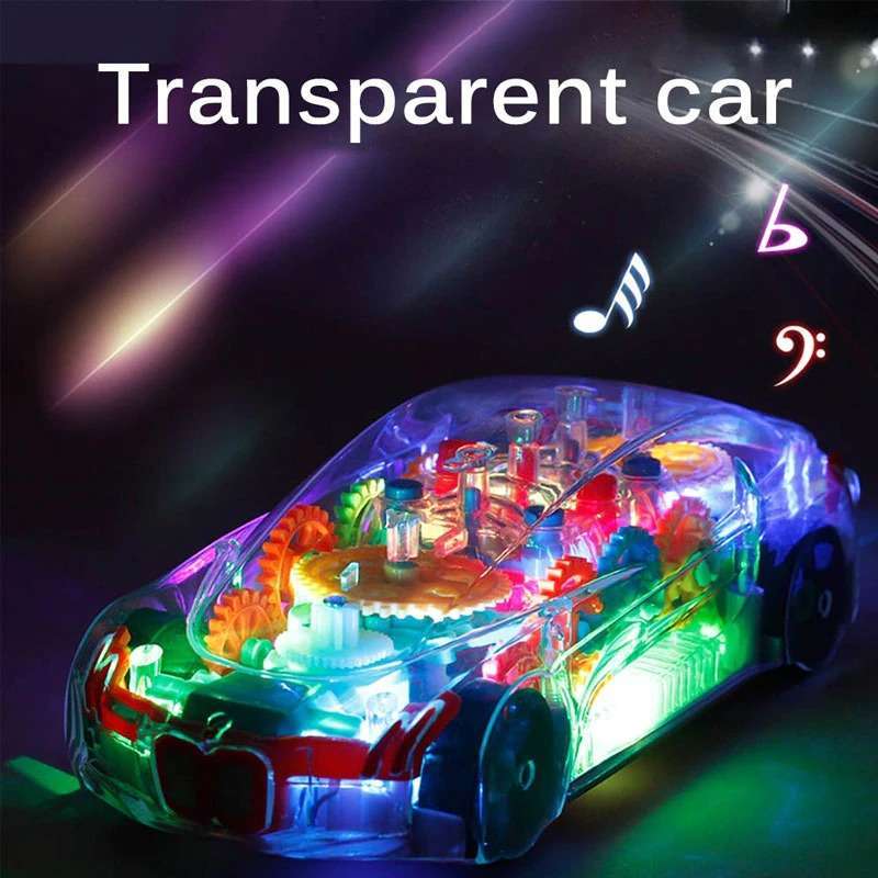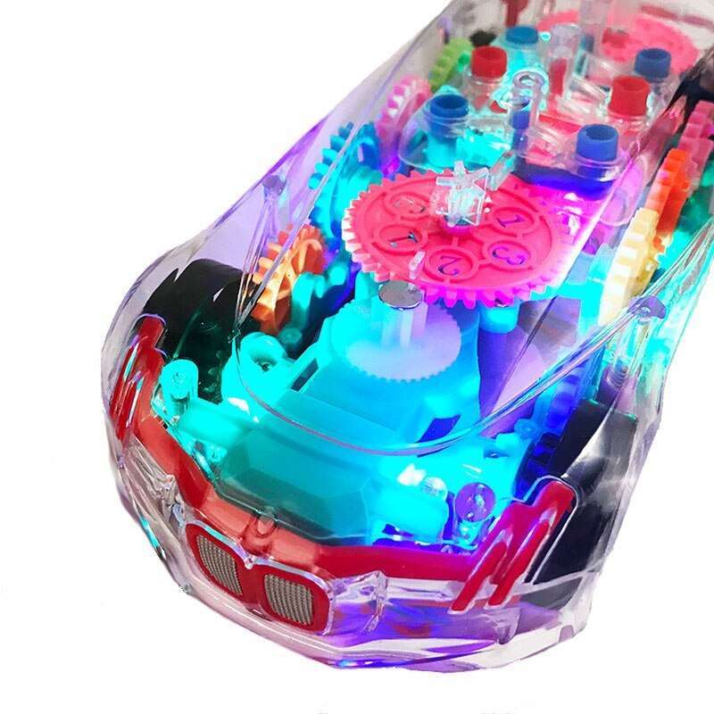 Rotating Transparent Gear Car With Sound & Light Luminous Flashing Toy For Kids