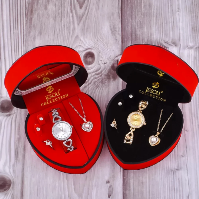 Women Bracelet Watch Set (১পিছ ঘড়ি, ১পিছ নেকলেস, ১পিছ আংটি, ১সেট কানের দুল)